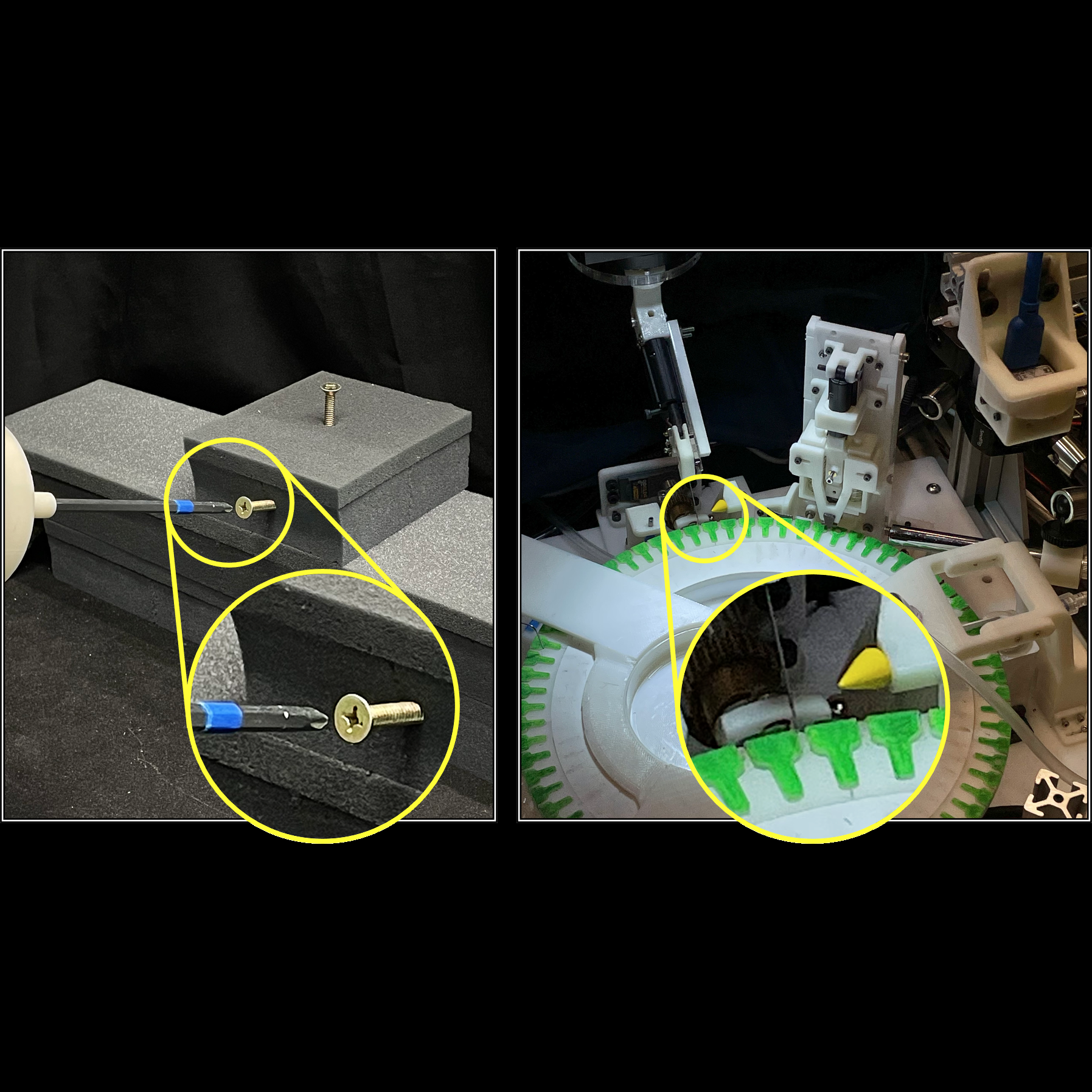 without hand-eye and camera calibrations in 1, 3, and 5 degrees of freedom.